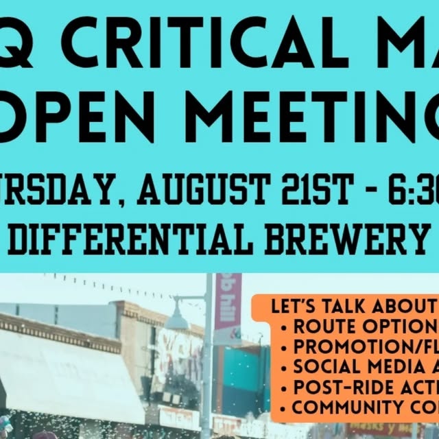 Bike Burque on Instagram: "This is the first of many open meetings for the Albuquerque bicycling community to gather, collaborate, and have input on how our critical mass ride can intentionally support each other. We need to include as many voices as possible in our events and activities, and share responsibility for making critical mass the ride that works for Albuquerque, so please come out! If you can't make the in person event, share your thoughts on this post or send a DM! Thanks!"